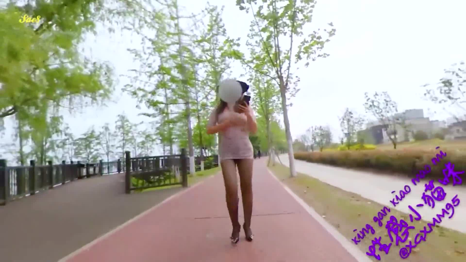 露出诱惑穿透明衣服散步露出给两个老头看
