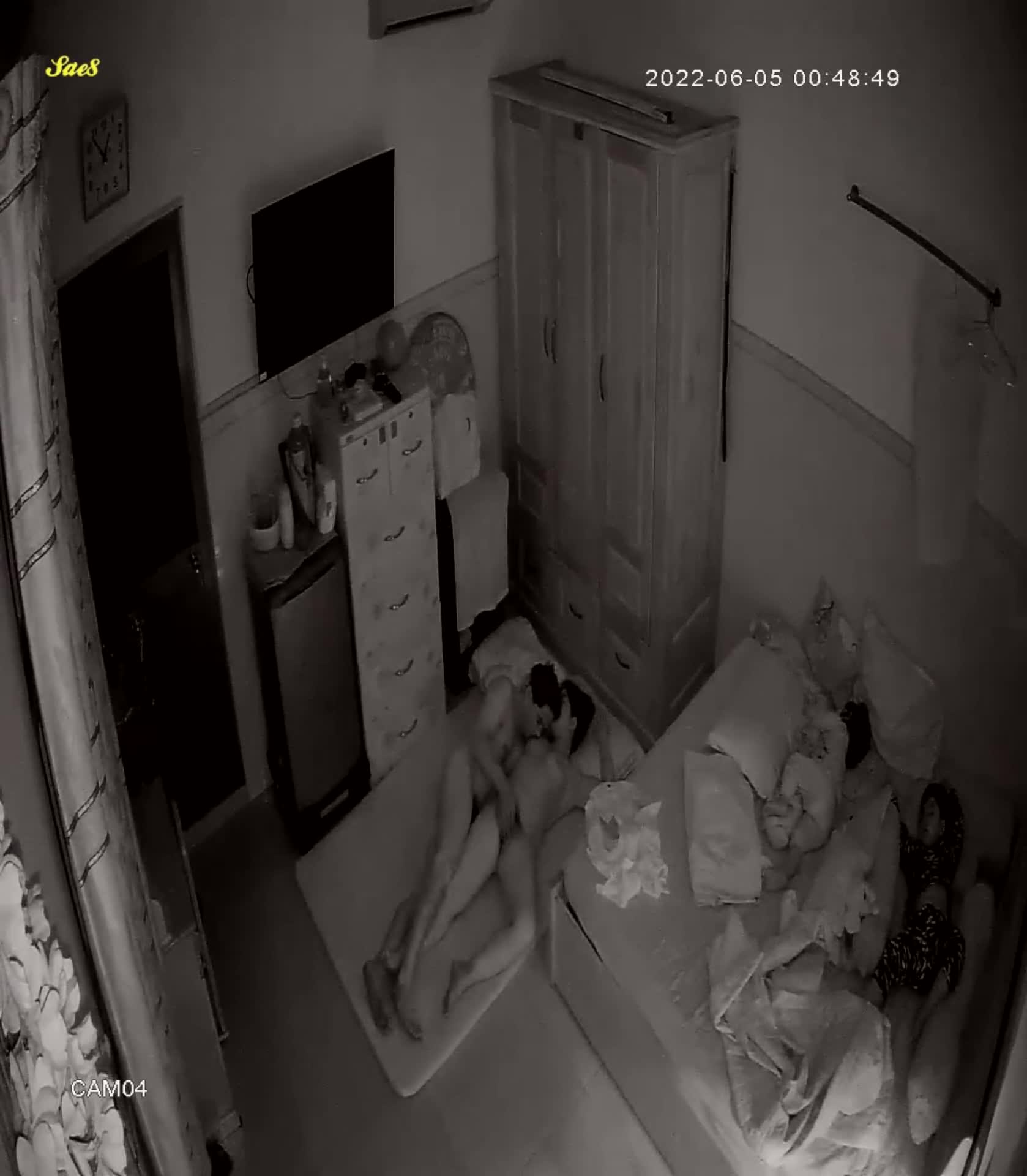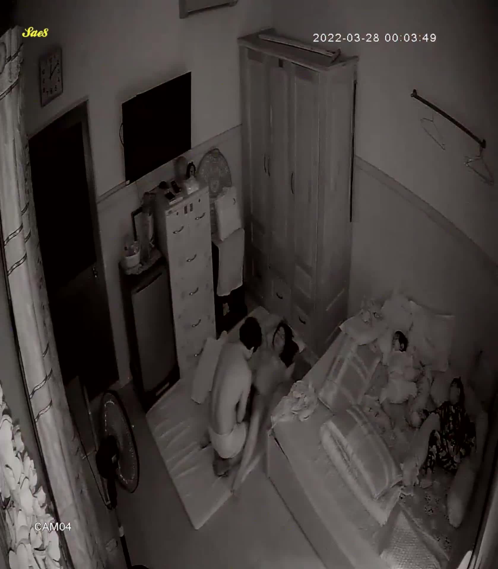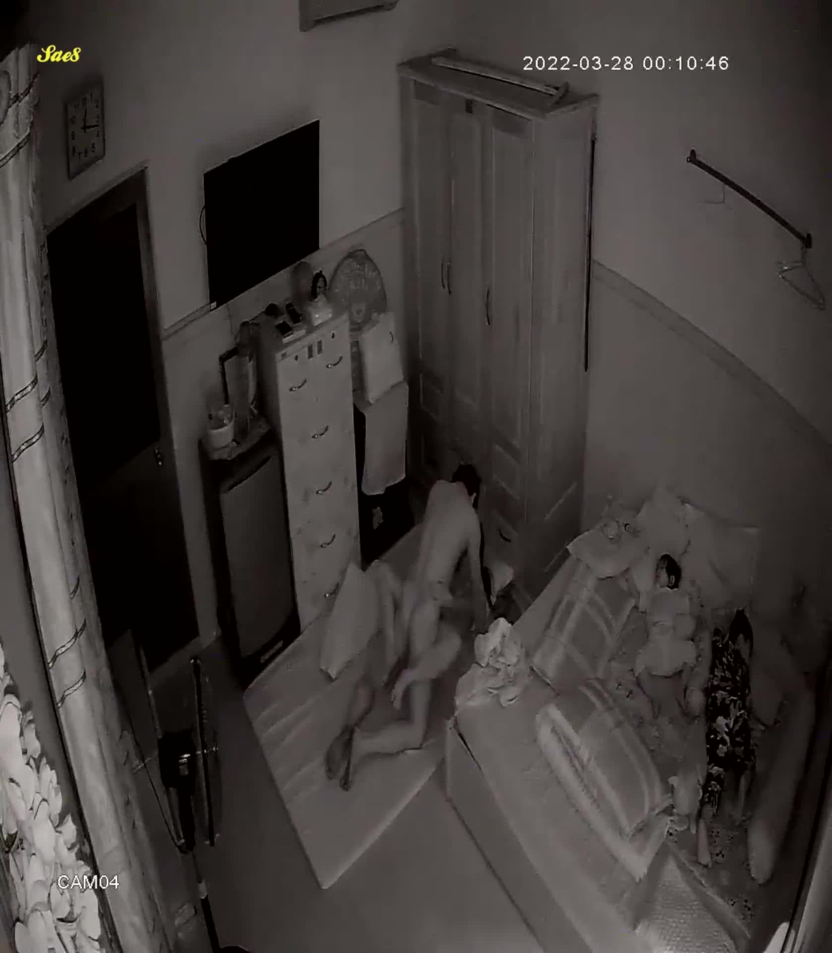摄像头夜视拍摄小夫妻熬到小孩睡着了才能做爱做的事。