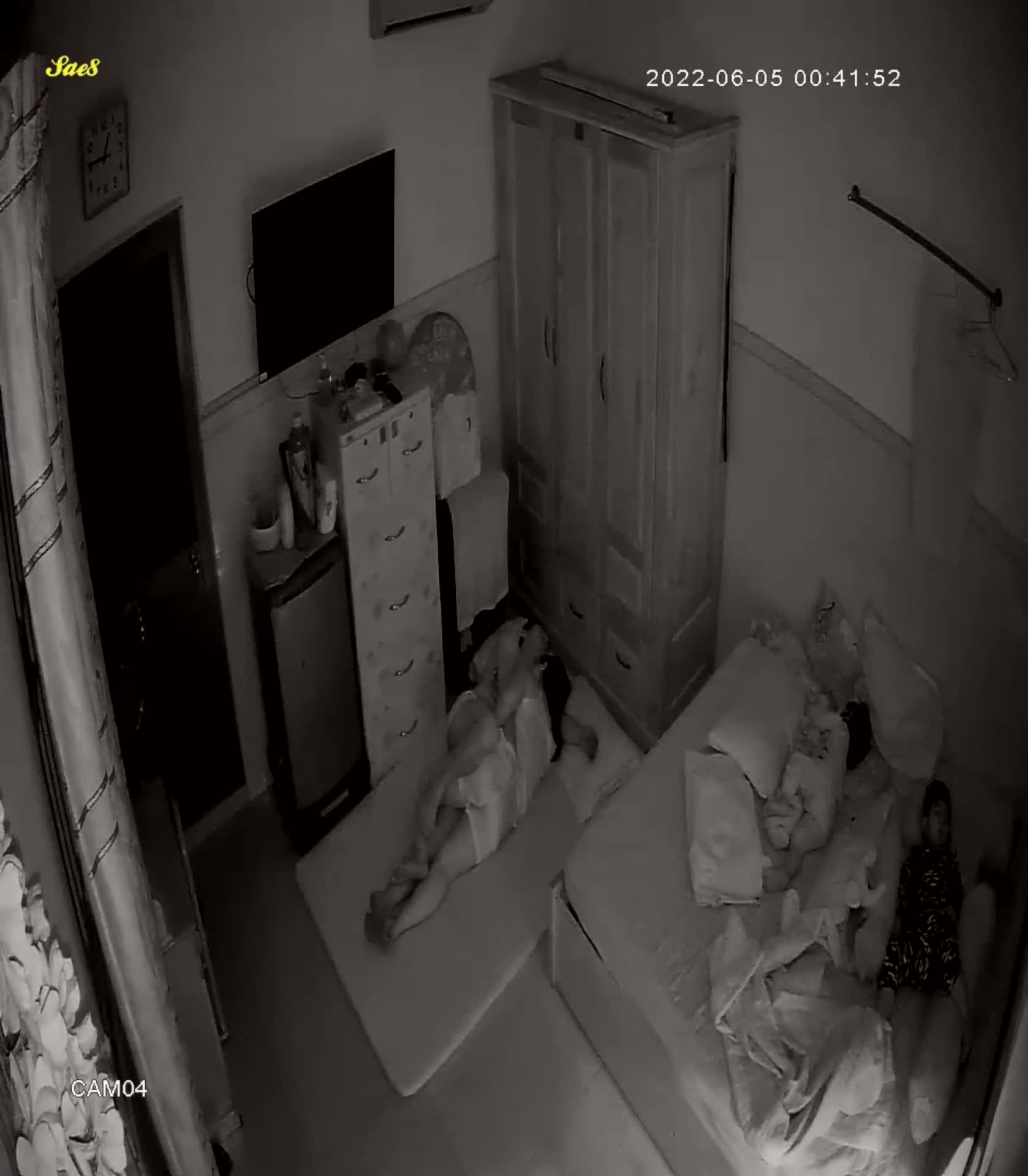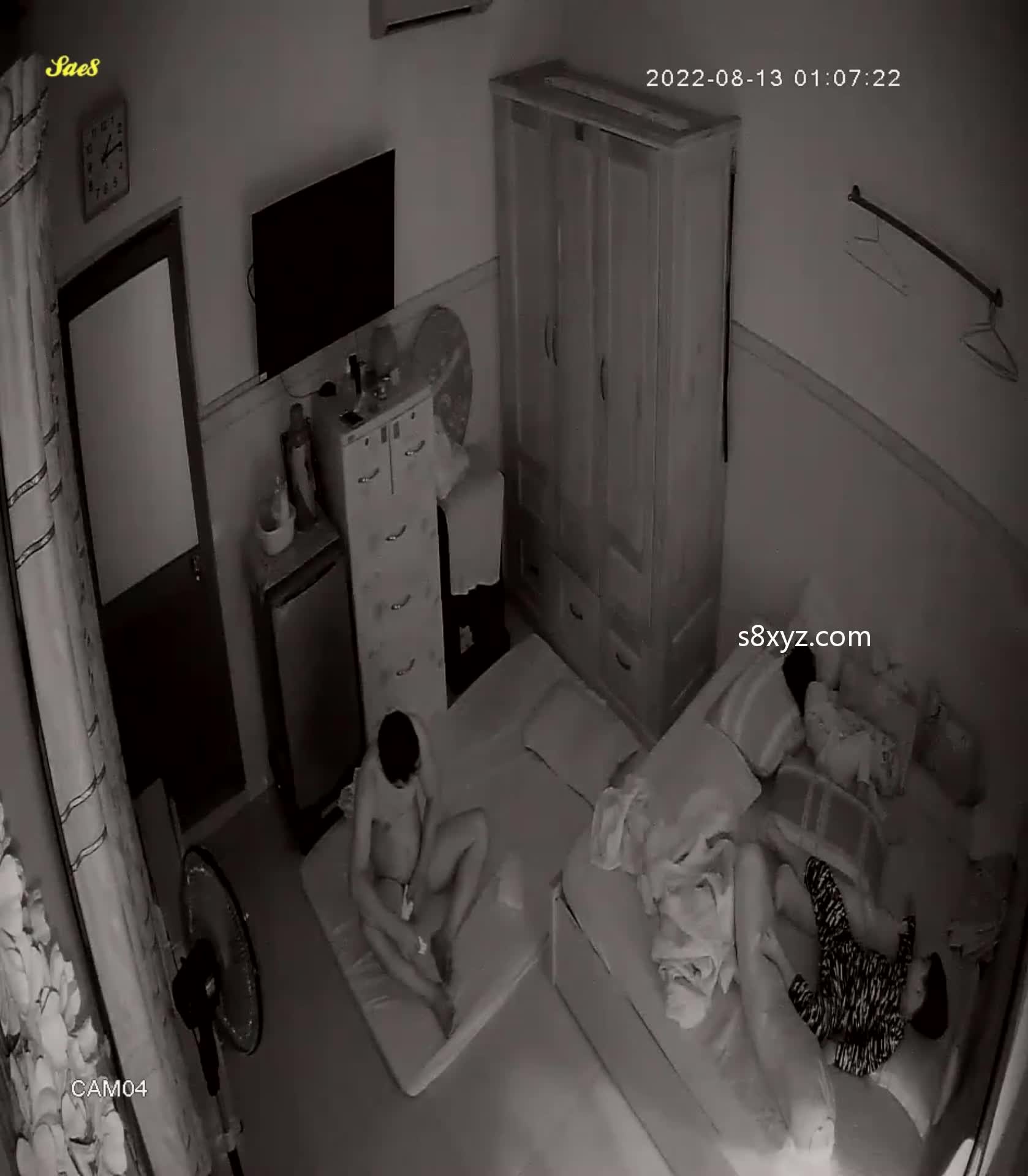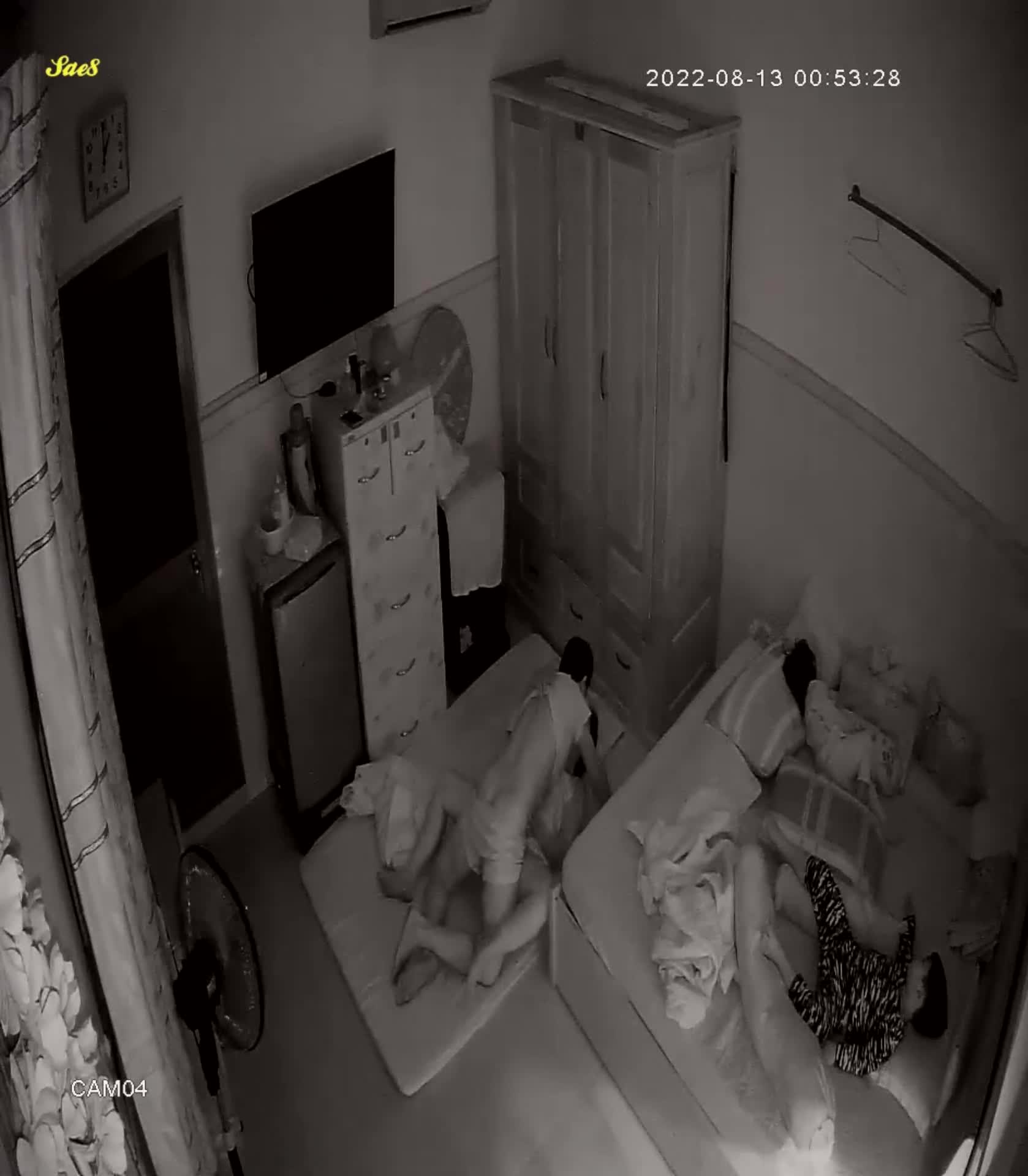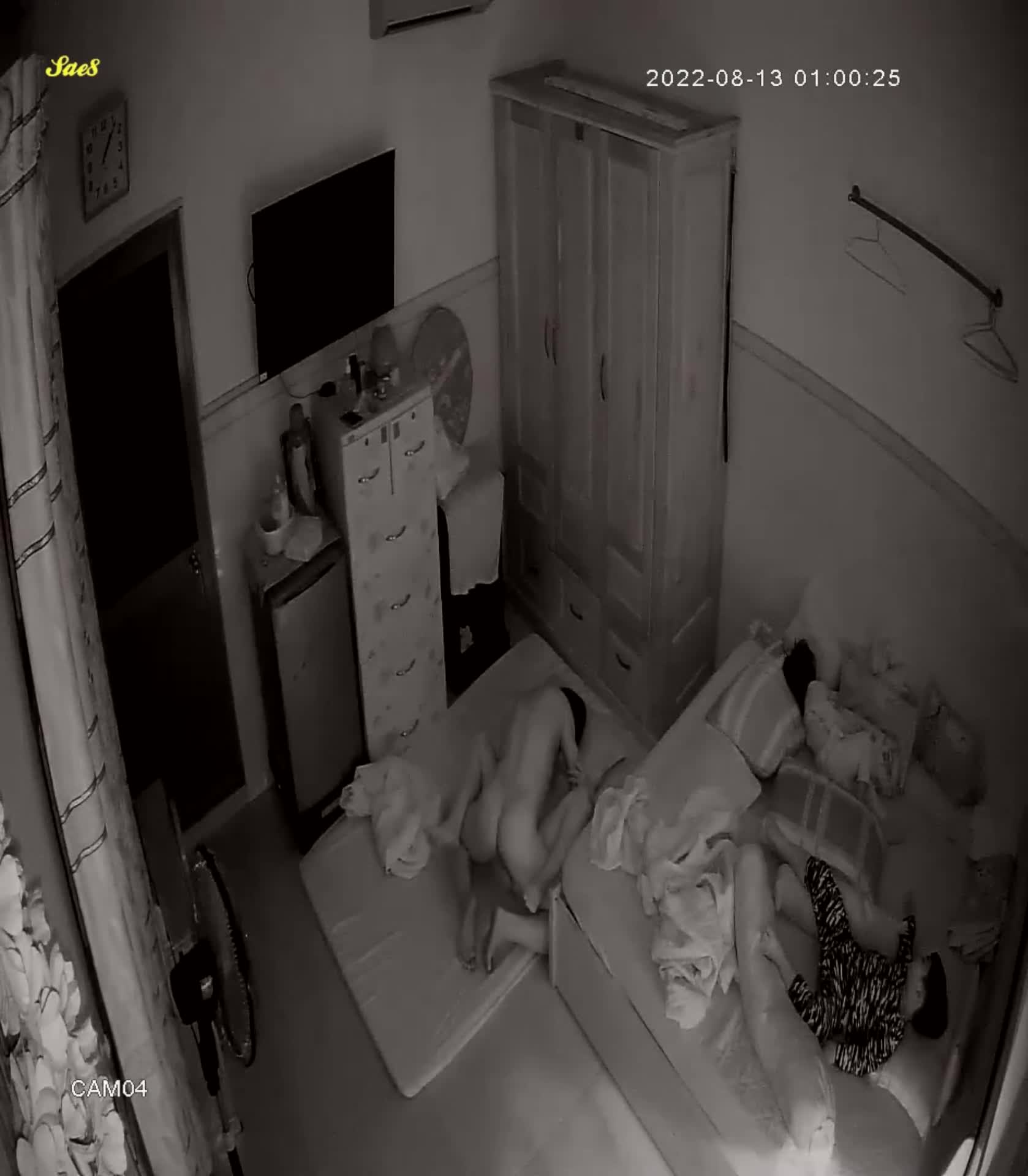 摄像头夜视拍摄小夫妻熬到小孩睡着了才能做爱做的事。